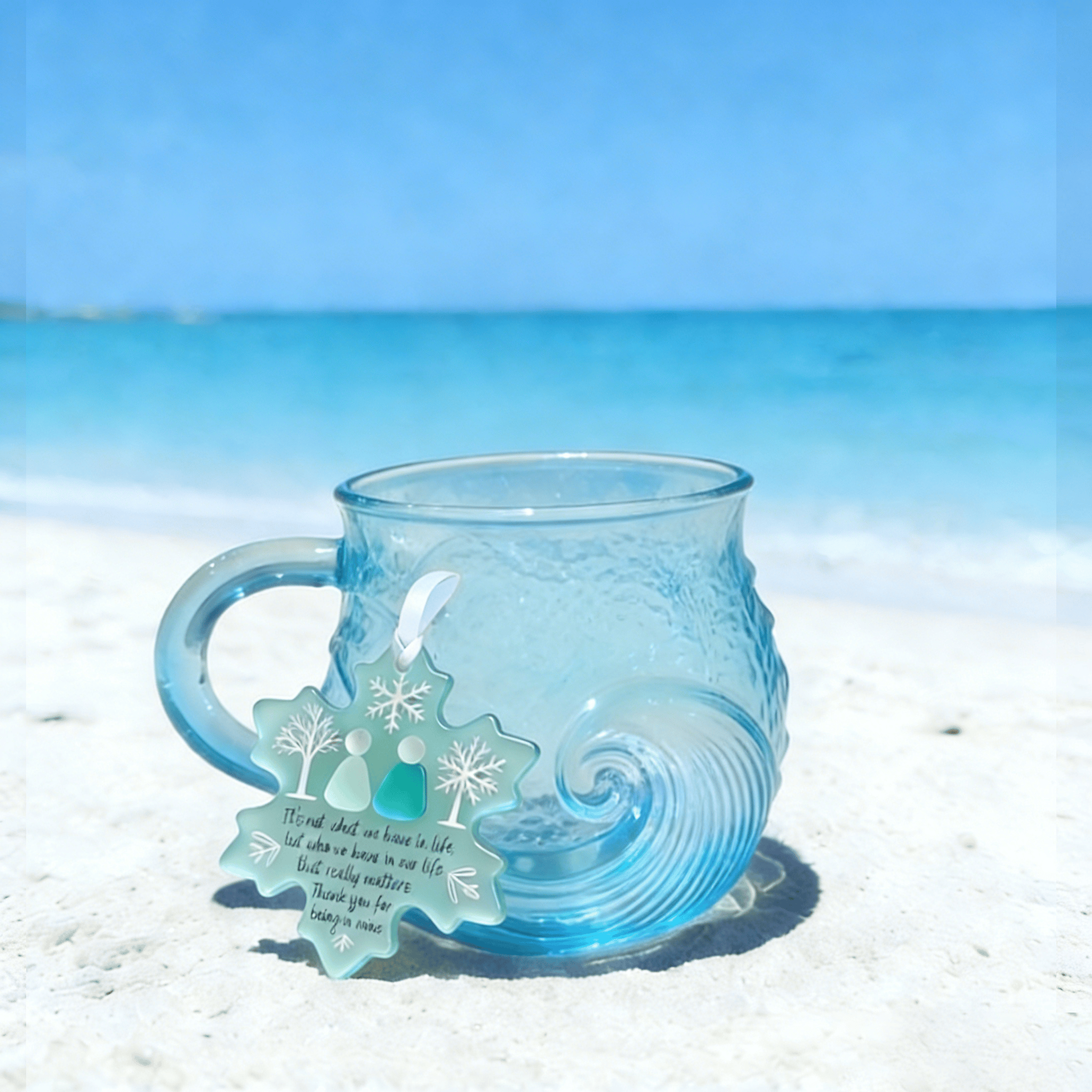 Bring the calming beauty of the ocean into your hands with the Ocean Wave Glass Mug.